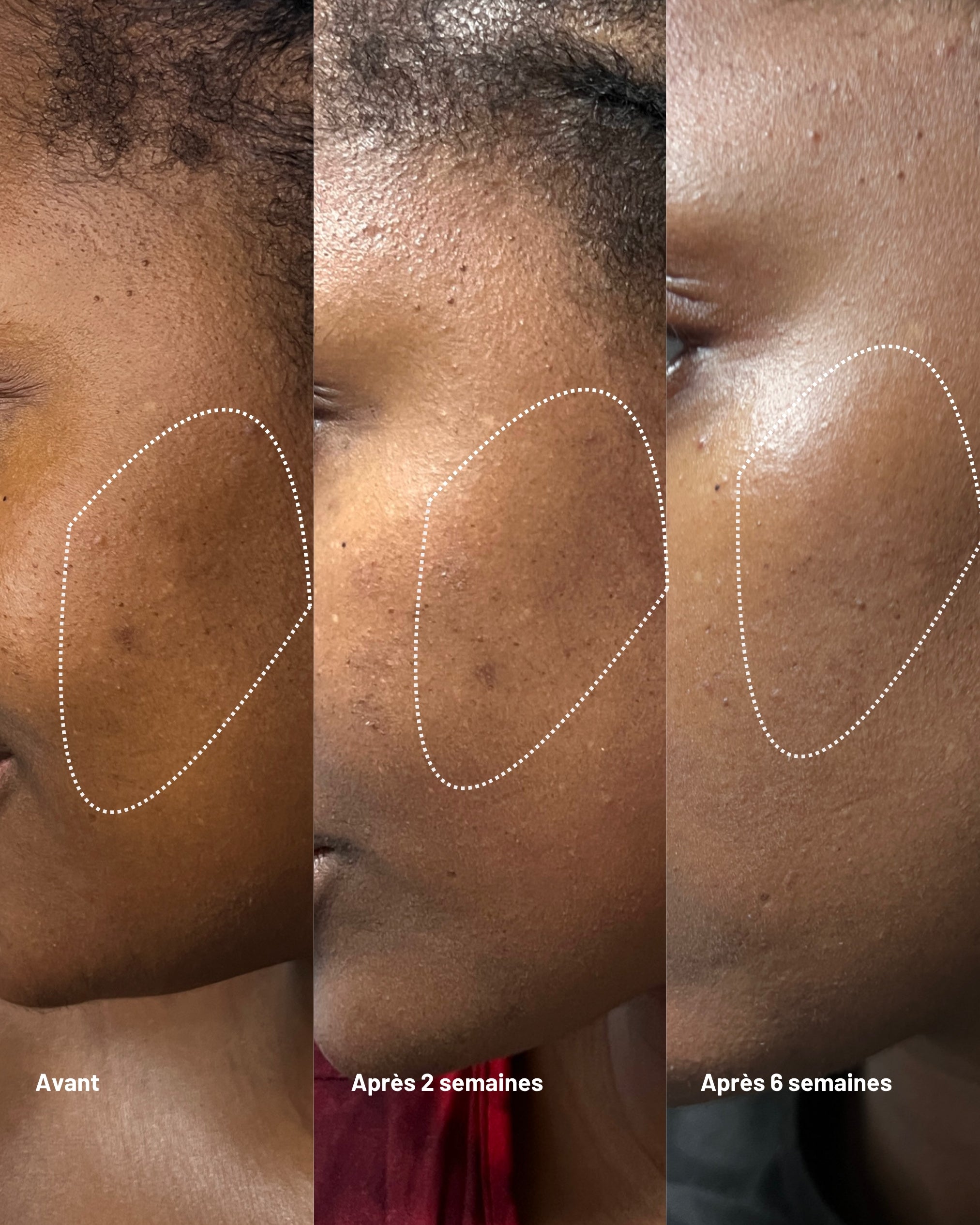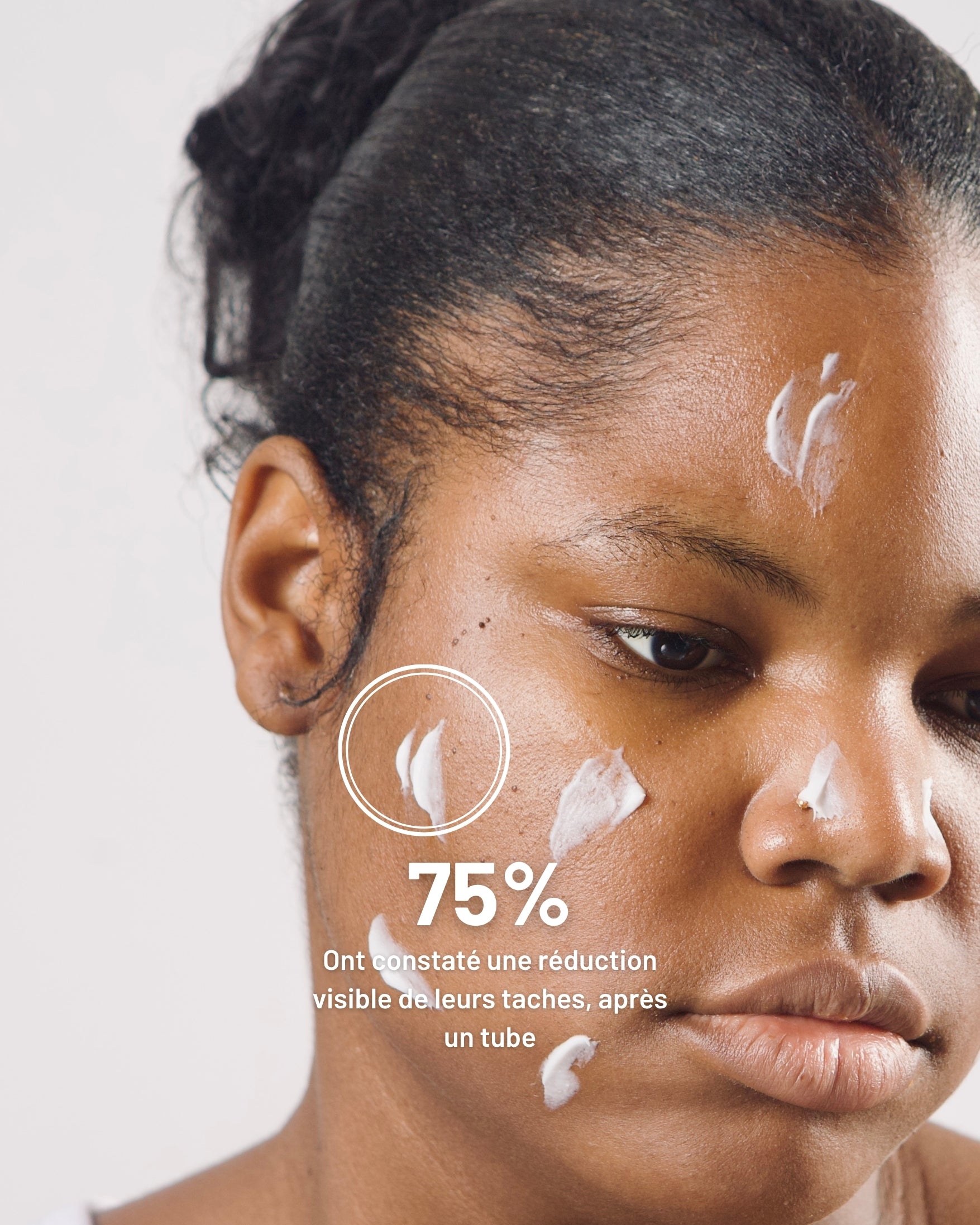 Les résultats varient selon le type de taches (soleil, acné, âge, cicatrice) : certaines s’estompent dès 7 jours, d’autres à la fin du tube. En appliquant le Sérum Anti-taches deux fois par jour, 75 % des utilisateurs ont constaté une réduction visible de leurs taches. *